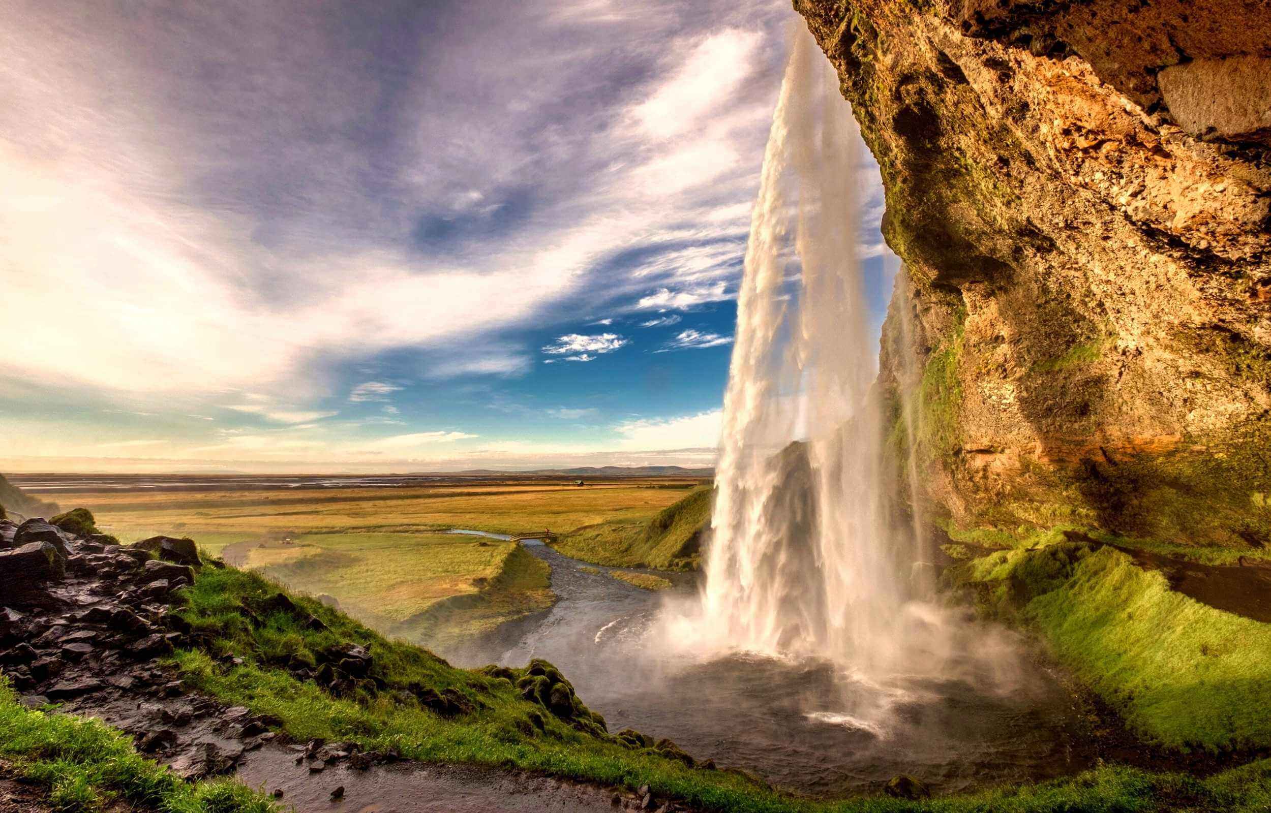 Zjemy śniadanie i pojedziemy wzdłuż południowego brzegu Islandii pod wodospad Seljalandsfoss. Jest on popularny wśród uczestników każdej wycieczki na Islandię nie tylko dzięki swojej 60-metrowej kaskadzie, ale też dzięki opcji przejścia za ścianą wody. Dzięki temu tę unikatową kaskadę będziemy podziwiać z zupełnie innej, nietypowej perspektywy.